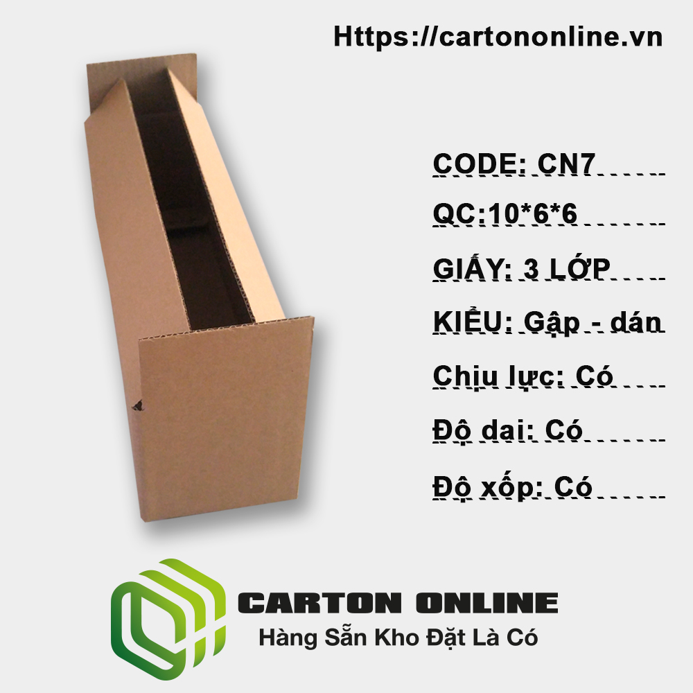 - Chất liệu : carton 3 lớp sóng C,B , Mặt Nâu, cứng cáp, chịu lực tốt.