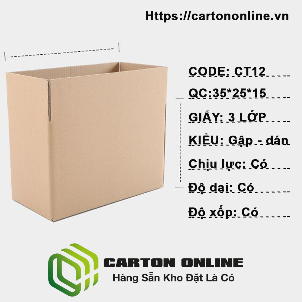 - Chất liệu : carton 3 lớp sóng C,B , Mặt Nâu, cứng cáp, chịu lực tốt.